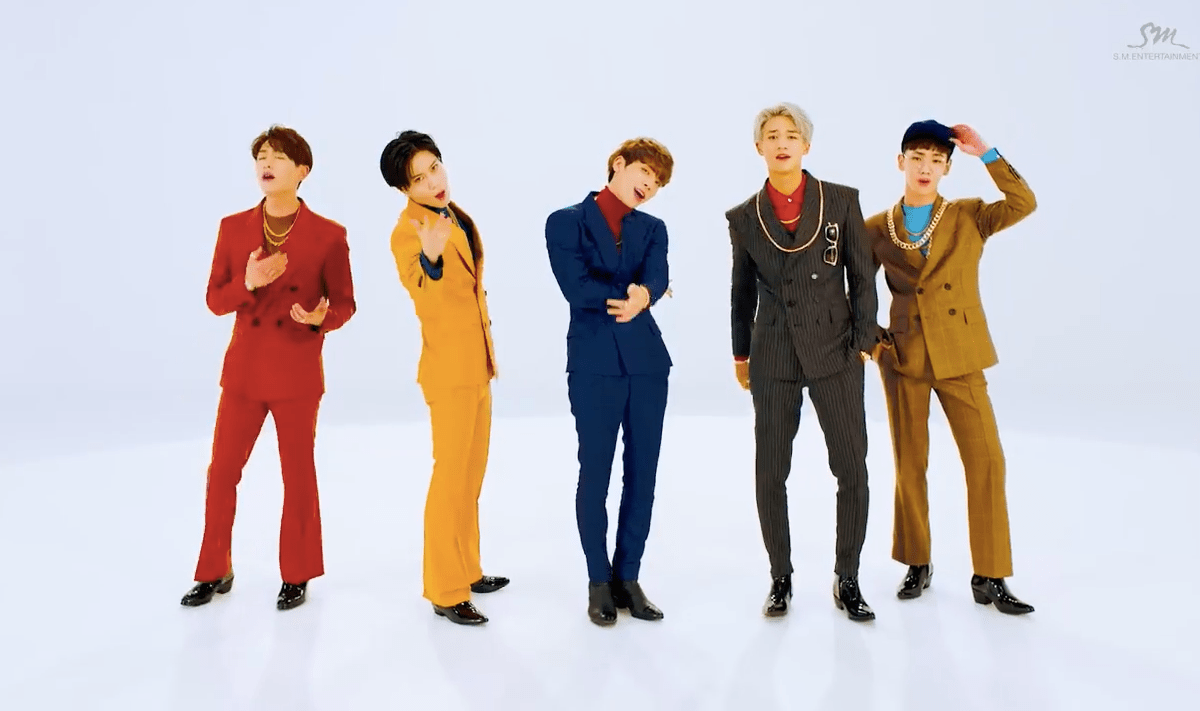 - Using the white background is quite smart. As soon as you see the members, you are drawn to their flashy colours and the members themselves. Really emphasises what everyone is wearing and is very minimalistic.