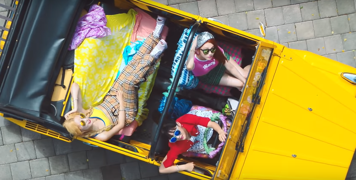 The music video is definitely perfectly fitted for the Summer season, as well. The members take a break from their lives and go on a holiday. What I liked more was the humour that was shown in the video. My favourite example was Nayoung opening a bag of popcorn and indulging herself. The next scene shows her hula-hooping to work off those extra calories and her facial expression says it all! I think all the members looked amazing in the video and some of the shots were really nice. I also liked the bright colours throughout the video.