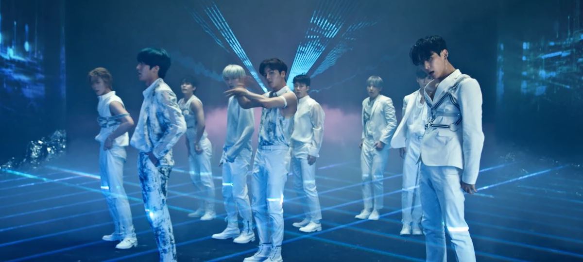 There seemed to be a plotline in the video. Based on what is seen, I assume it is set in a video game context with a futuristic heist being the main target. It seemed like some members made it through successfully by completing their mission, while others were lost (i..e Chani who took off his controller, which Zuho later picked up). However, based on what I saw, only one member successfully got the end (whoever stopped the sliding briefcase). Based on the lyrics, it seems like they were all racing to love. So maybe whoever stopped the briefcase at the end was the one who made to ‘love’ successfully. Awesome video with really cool effects and visuals.