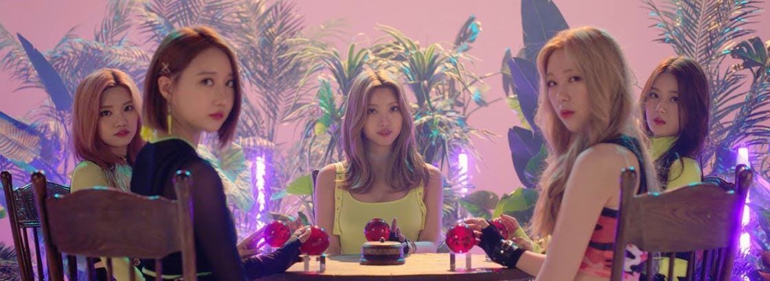 I have to admit, I did not expect such a bright song for a group were very edgy clothing. I was expecting something a lot darker and serious tone with their outfits, so things were surprising as they progressed. The start of the music video showed a very interesting sequence. A table set up in the middle of nowhere and 5 girls are sitting around the table. A strange clock starts ringing on the table and they all run away in different directions. While acting all bright and happy, the members end up finding red crystal balls, which they bring back to the table (which is now situated within a set). I find the concept to be very intriguing but it also seems to be an odd pairing. I think the concept would have been better suited with a more serious dance track that allows the mysterious vibes to be harnessed to their full potential.