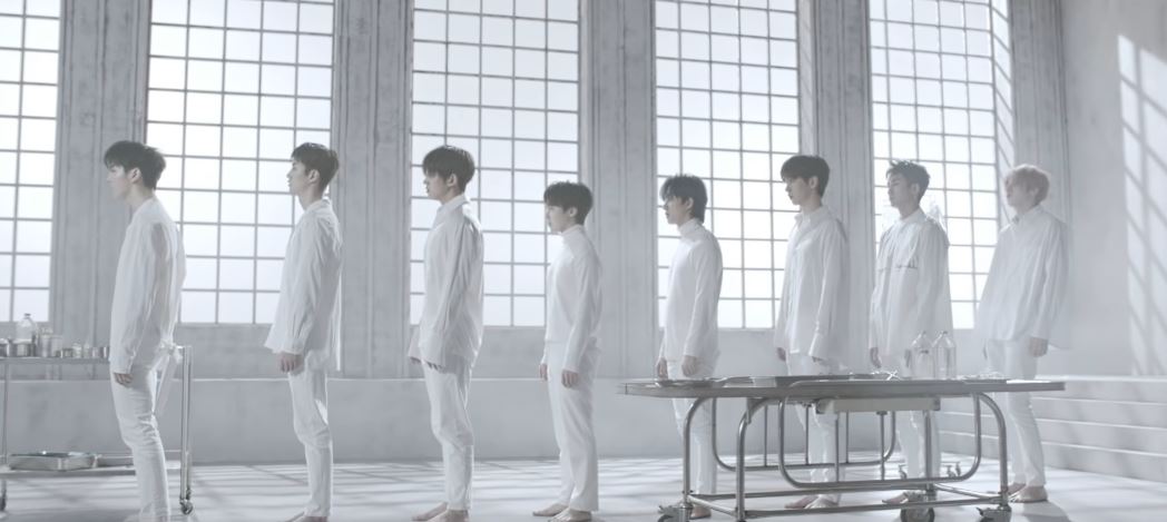 Not only did their sound go from bright to intense, but their visual concept also shared the same change. Obviously, it matches up with the song. The lyrics provided insight into a crazed split-personality and the members did an amazing job of showing that in the music video. From their crazed dark side to their scared innocent side, their acting was spot on. In the end, it was shown that they were all patients in a facility, which makes me glad as they did seem they were freely roaming before. I really liked the dark scenes, particularly the choreography shots. It just really emphasizes the new image. I do agree with the netizens this time around when it comes to Hongseok’s outfit. I do think it is a little overkill for this concept and it is more to show off the abs that has been in spotlight.