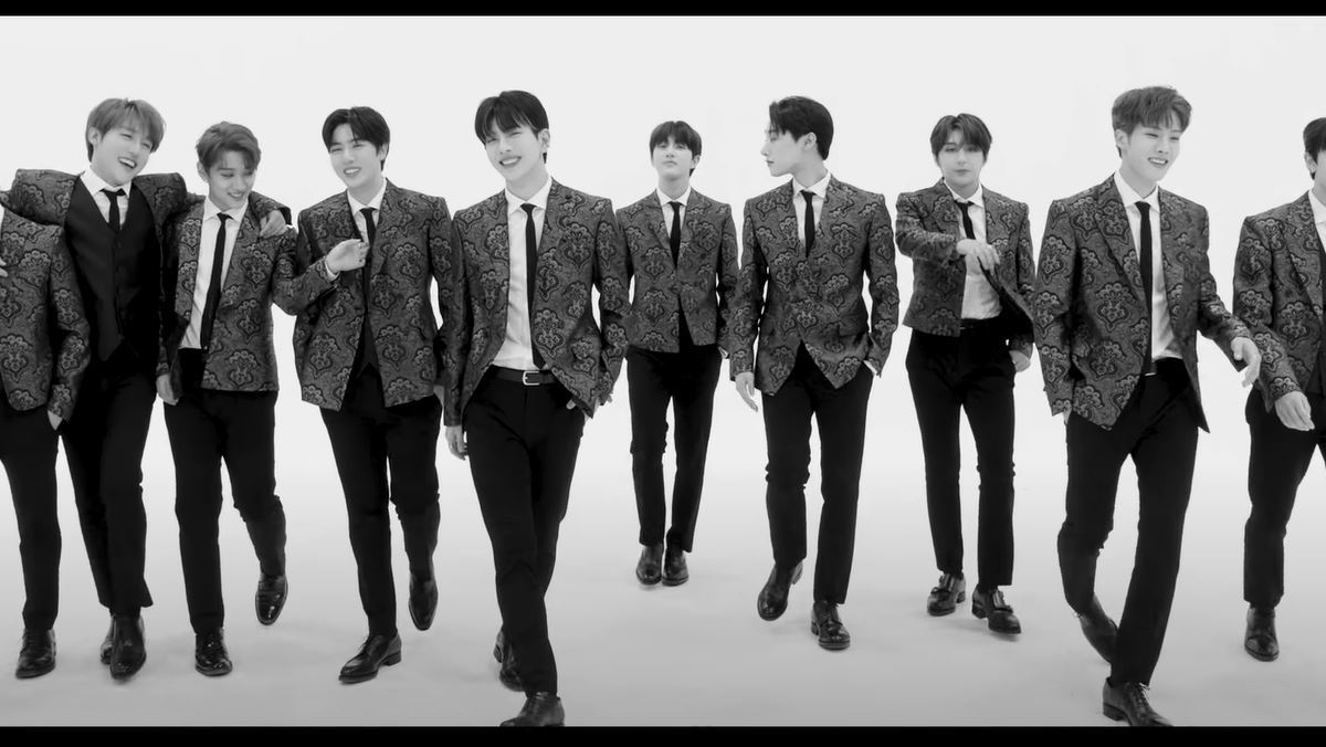 The music video also taps into that sophisticated side. The room (painted pale green room with gold detailings on the wall that I am sure other KPOP idols have filmed in before) was classy and vintage-looking. The props in the room were also gave off that same vibe, though I am not too sure of the food items they had on the table when everyone was in the room (cheeseballs, sauce bottles and decorating donuts – someone didn’t get the classy and elegant memo for that aspect of this video). The choreography scenes were quite simple. A black and white filter, with the member dancing over a white background. The sophistication here comes from the members who are dressed in suits and looked very dapper and proper. Not the most amazing music video, but it works.