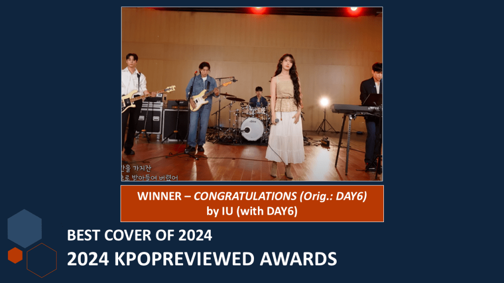 Best Cover of 2024 Nominees: What Makes You Beautiful (Orig.: One Direction) – ENHYPEN, Congratulations (Orig.: DAY6) – IU with DAY6, Sixth Sense (Orig.: Brown Eyed Girls) – KISS OF LIFE, Rewrite The Stars (Orig.: Zac Efron & Zendaya), FEIFEI (Orig.: Sita Chan) – NMIXX & I Have Nothing (Orig.: Whitney Houston) – WENDY.