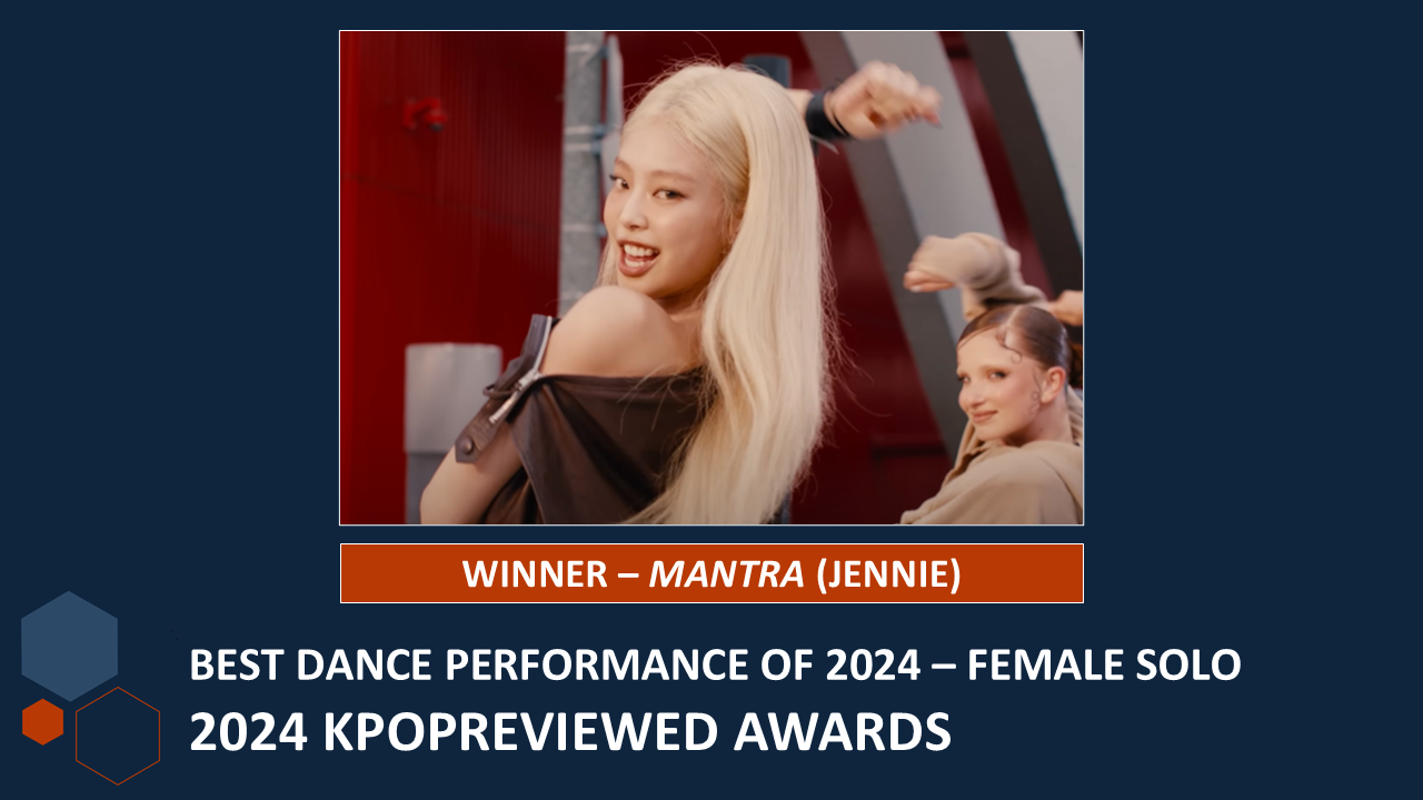 Best Dance Performance of 2024 – Female Solo Nominees: EENIE MEENIE – CHUNG HA, NA – HWASA, Mantra – JENNIE, Don’t – LEE CHAE YEON, ABCD – NAYEON & Run Away – TZUYU.