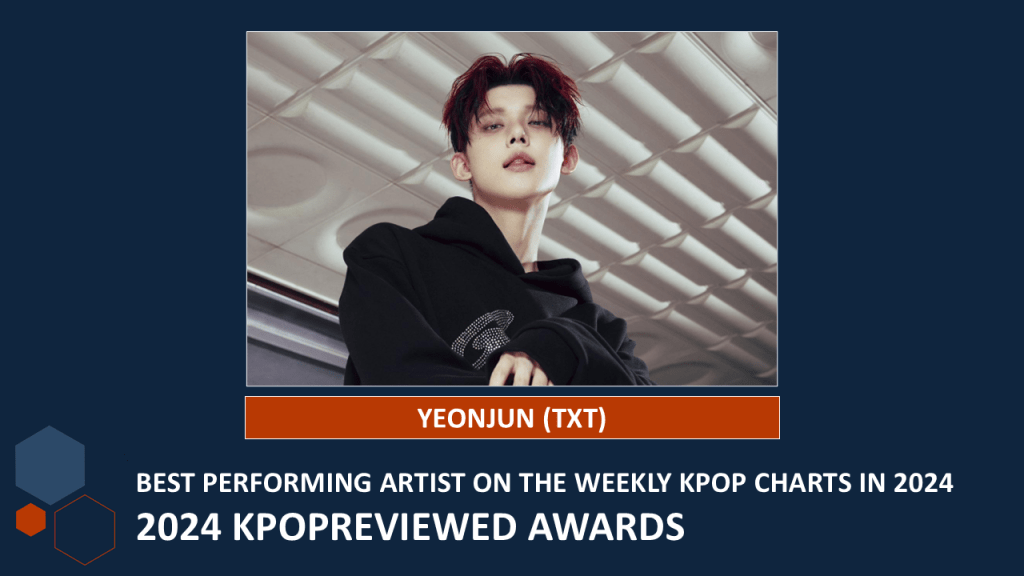 - Best Performing Artist on the Weekly KPOP Charts in 2024 – awarded to the artist who had ranked the highest and most consistently across all its songs on the Weekly KPOP Charts in 2024.