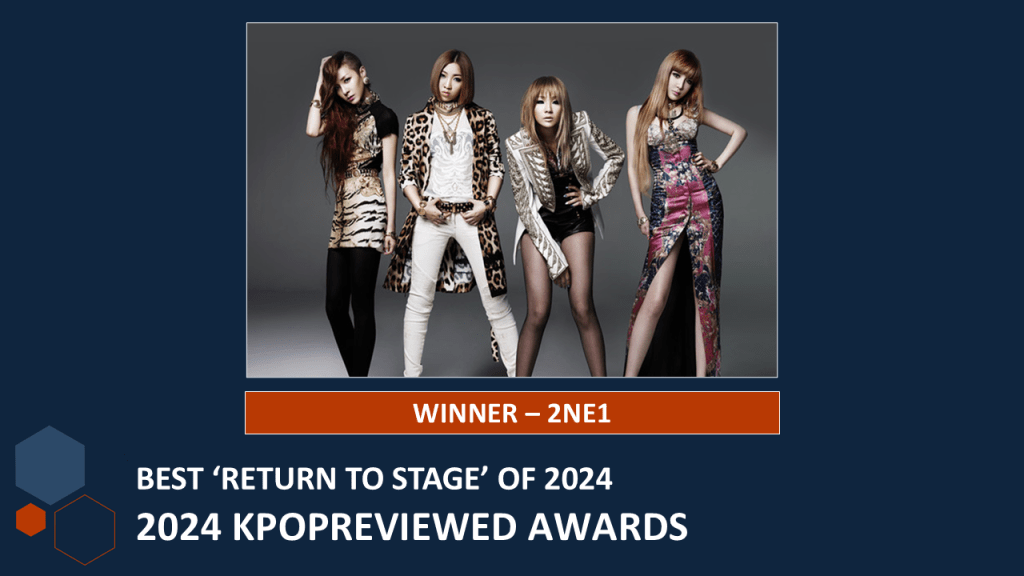 Best ‘Return to Stage’ of 2024 Nominees: 2NE1, BANG&JUNG&YOO&MOON, CHUNG HA, DAY6, FTISLAND & G-DRAGON.
