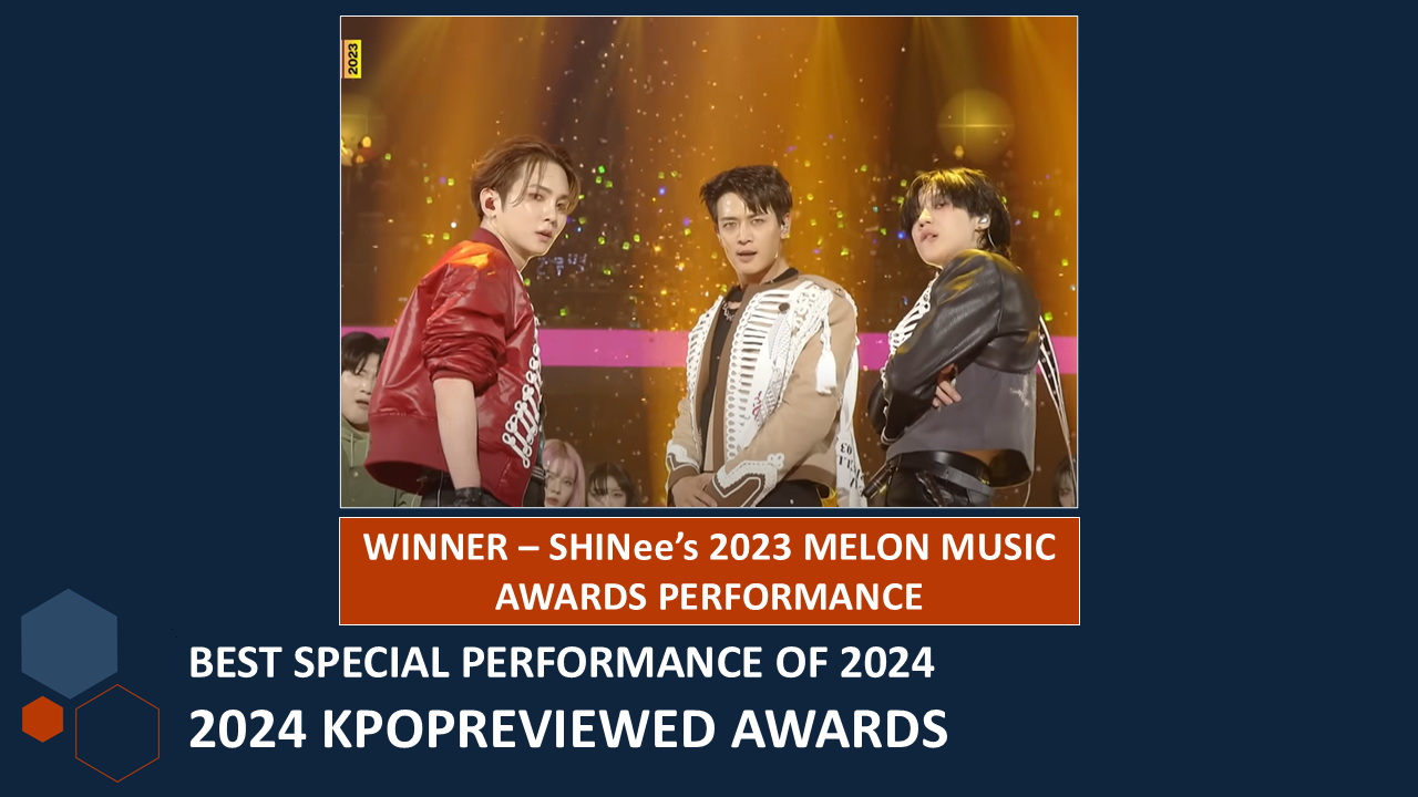 Best Special Performance of 2024 Nominees: DAY6’s 2023 MBC Music Festival Performance, JEON SOMI’s 2023 MAMA Awards Performance, LE SSERAFIM’s 2023 MAMA Awards Performance, NCT DREAM’s 2023 Melon Music Awards Performance, SHINee’s 2023 Melon Music Awards Performance & Stray Kids’ Chk Chk Boom + Bye Bye Bye Mashup at 50th AMAs.