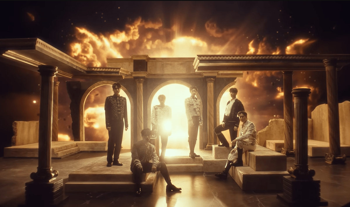 Some people did not like the use of AI in the music video, which is a fair opinion. Some parts did look a little cheesy, such as CHANYEOL on fire and the members/soldiers on the inside rim of the crown. But I didn’t mind its use. Parts look more epic as a result, which adds to a memorable feel. I noticed that the members’ powers in this video match those in their MAMA music video. CHANYEOL with fire; D.O causing an earthquake back then and breaking a tombstone in this video; SUHO playing with water; LAY helping plants grow/heal; KAI teleporting himself and the members and dancers; SEHUN causing buildings to crash and turning them into dust storms. They use these powers to battle (not sure who, though) their way to the throne, with the dark concept turning golden once they reach the top.