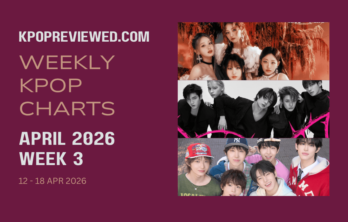 Not many reviews this week because of work (literally got home and crashed on the couch, if I didn’t make it to bed). Also had plans for an album review yesterday, but I overslept. The album review will be posted later today. But before then, here is the Weekly KPOP Chart for Week 3 of April 2026.