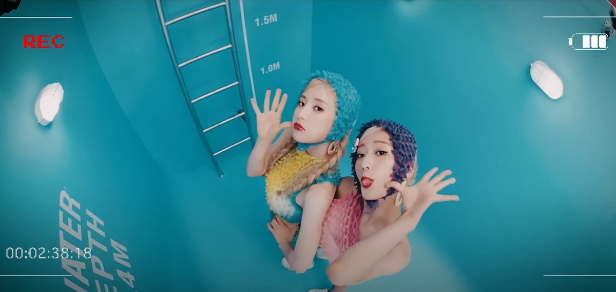 While the song doesn’t go down the cutesy route of KPOP, the music video definitely approaches the comeback in that manner. The video is quite colourful and potentially could have been quite vibrant, as well. But just like the song, the dulling effect on the colours helped give off a refined and mature feel. Anyhow, it is clear that this video has a plotline behind it. Though, I am not entirely sure what it is trying to say as you kind of need to read into it. The pair from APINK are initially trapped in a TV (and based on the ending, a video game, to be more specific) and are brought into this storage-like room (in what looks like a hospital) by a lady where they are kept as mannequins. After the lady that drops them off leaves with the TV, the pair run off to discover their surroundings. Based on the video game concept introduced at the end, the members are being controlled by the game player and run away from the facility. As they run away and/or escape the hospital, more colour come into their lives (as opposed to the white dresses and coloured stockings we first saw them in). This either symbolises that they discovering more of themselves (as opposed from being copycats of one another) or they are progressing in the game. In the end, the girls are caught and the words ‘GAME OVER’ appear on the screen. We then see the CHOBOM pair (back in their original copycat forms) warn the guy playing the game of the person approaching him from behind. He had a ‘not again’ response to what appears like the same lady from the start approach him instead. Maybe it is one of those cursed games where if he loses (which he does), he becomes the next victim for the next person to play, and he is stuck in a horrible time loop? Who knows.