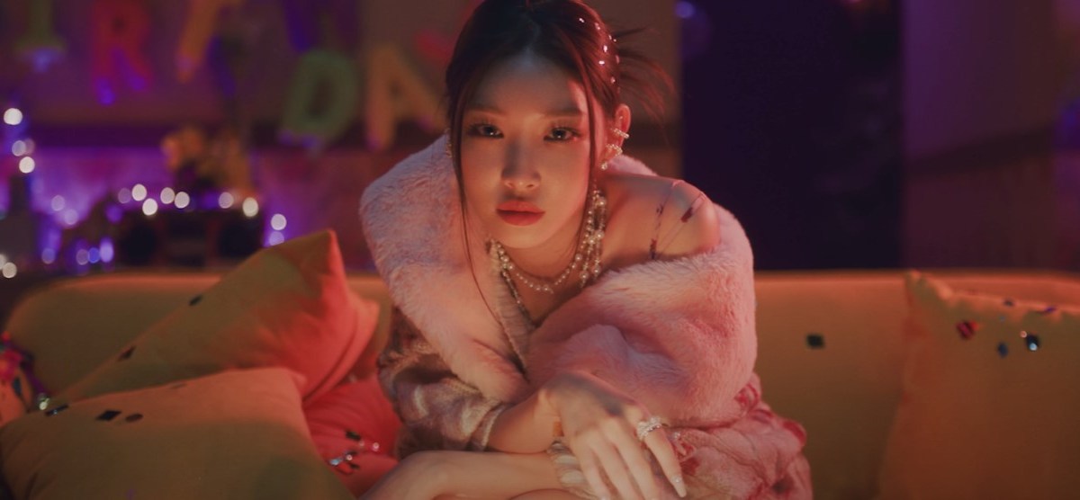 The song likens the idea of falling in love with the algorithm associated with social media that gives you consistent content you like and want to see. CHUNG HA looks stunning as always in the video, and I like how the video touches on some viral trends, like the awkward dancing at the 1:04 mark of the video and the poses in everyday locations that gives off a magazine-esque vibe trend that follows soon after. Of course, CHUNG HA looks amazing despite the cringeiness these trends entail. The video also features fun cameos from GABEE (who appears as friend of CHUNG HA’s who ends up cursing at her), Hyo Kyum (a model who appears as the DJ) and Uhm Jung Hwa (a legendary KPOP artist known as Korea’s Madonna and famous actress who appeared as the titular character in k-drama Doctor Cha) and Bambi (who, according to the YouTube comments, is CHUNG HA’s dog).