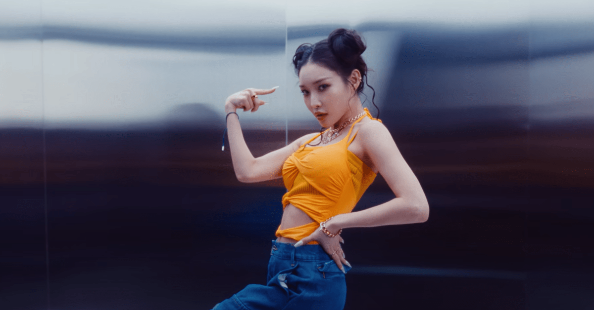 Chungha is definitely a person full of visuals. And this music video highlights just that. Regardless if she dons a casual look, a commanding look, a golden look or a glamorous look, Chungha looks amazing nonetheless. Even she pulls off a lip ring flawlessly. I also thought the sets were visually stunning. The floating panels and the framed rectangular prism all looks superb, which adds to that glamorous touch that the video ended opting for as the video progressed, a concept that without doubt suits Chungha.