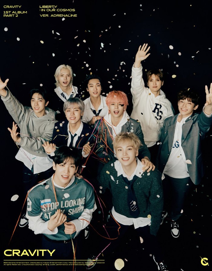 CRAVITY made their comeback last year with Part 1 of their 1st studio album, The Awakening: Written In The Stars. This was headlined with the title track Gas Pedal and the secondary track VENI VIDI VICI. 7 months on (to March 2022), CRAVITY returned with the second part of their 1st studio album. This time, the album is titled LIBERTY: IN OUR COSMOS and features the title track Adrenaline. Alongside that, there are 6 other songs and an outro track.