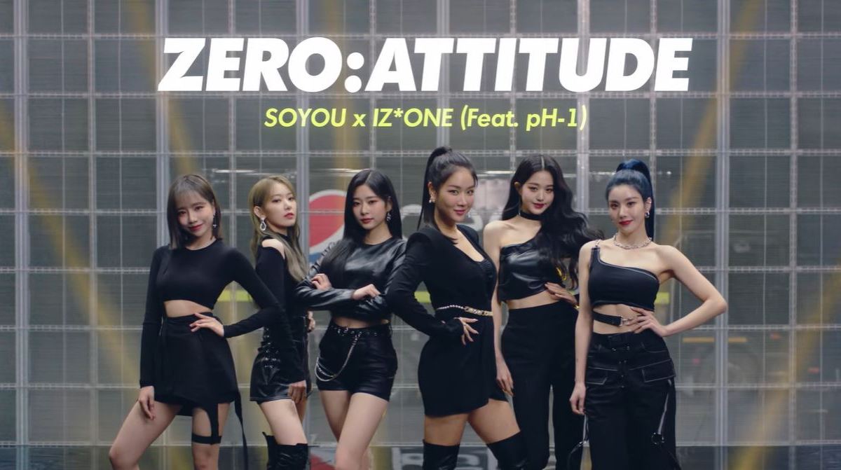 Prepare yourself for the first collaboration of 2021. Members from IZ*ONE (Eunbi, Sakura, Minju, Yuri and WonYoung) and former Sistar member Soyou have joined forces with pH-1 for the new single, ZERO:ATTITUDE. This new single forms part of the Pepsi X Starship Project, providing us with great collaborations between big KPOP artists since 2019. Other artists who have participated in this project include GFriend’s Eunha and VIXX’s Ravi (Blossom), Ong Seong Wu (Heart Sign), MONSTA X’s Hyungwon and former VIXX member Hongbin (Cool Love), Rain & Soyou (Beginning), Kang Daniel & Zico (Refresh) and CIX’s Bae Jin Young & WEi’s Kim Yo Han (I Believe).