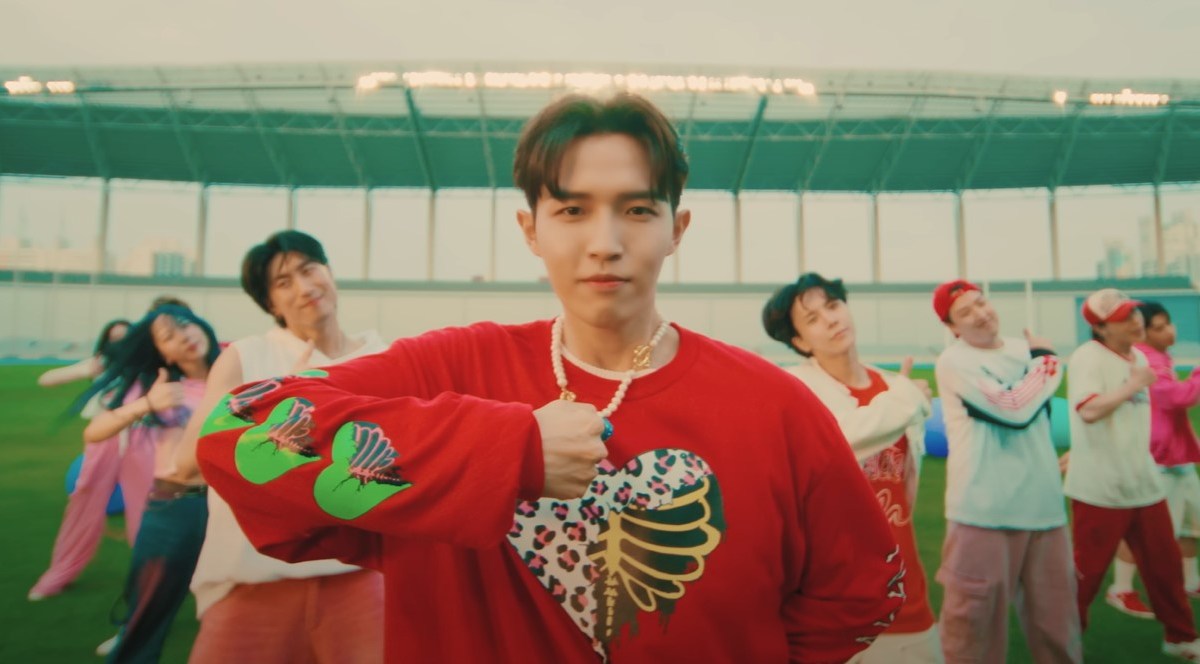 The main set that the music video looked really cool. The 3D clock that came out of floor is definitely going to be an iconic look. And if it doesn’t get to that status that it will definitely be an underrated set up. I also thought the colour emphasis was really good. The green scenes looked really beautiful, while the clock set were well accented with just the colour black. The sunset scenes with the yellow wall looked really nice, while Kim Jae Hwan’s red leather jacket gave off a bold look. The lighting played a really important part in the music video, especially during the sundial replication scenes. Overall, ticks all around for the music video.