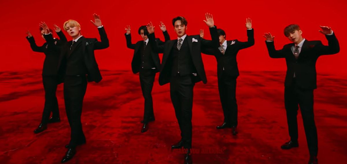 One of the things that had me hyped up for this particular comeback was their alluring teaser images. But those did not prepare me for the music video, which seems to have a murderer concept (and it is probably one of my favourite concepts to date – cause I have an affinity towards this type of stuff). Based on comments in the YouTube comments, fans noted that each member was portraying a character that seems to be inspired by infamous movie killers. Jooheon’s character is similar to the Joker (and his smile and sudden change at the start of the video will forever haunt me), Minhyuk’s character seems to be inspired by American Psycho, Kihyun’s character is inspired by Hannibal Lecter, Hyungwon’s was another obvious one with Fight Club, I.M’s character is inspired by Drive and Shownu is inspired by Kingsman (or other since fans are still debating this one). Aside from an awesome concept, I also really liked the dominance of the red and black in the sets, depending on the colour suit they are wearing for the scene. Also Hyungwon’s hairstyling is on point in this video! Just thought I put that out there.