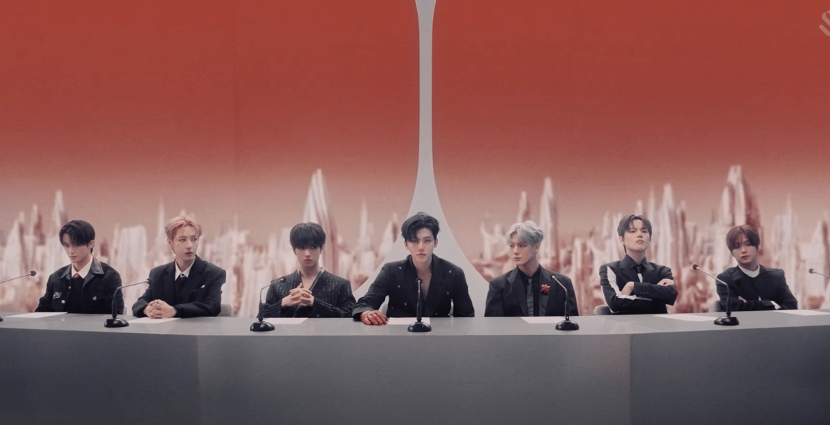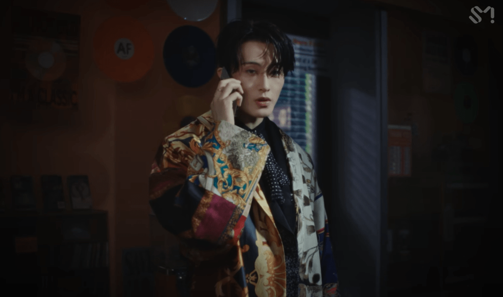 According to Google’s AI, Fraktsiya is the romanisation of the Korean word 쁘락지 (meaning ‘spy’). MARK and LEE YOUNG JI essentially rap about being spies in their respective ‘worlds’ – MARK being KPOP and LEE YOUNG JI being K-Hip-Hop. The video takes on a darker concept than usual for MARK. We see him as a spy in the first part. We then see him in the KPOP world, out of place and calm in the chaos as the staff prepares for a photoshoot. When LEE YOUNG JI appears, she appears out-of-place, as well. She wears a jacket with a touch of green on a green carpet, while everyone else is dressed in black suits on the white background. It was a cool video overall.