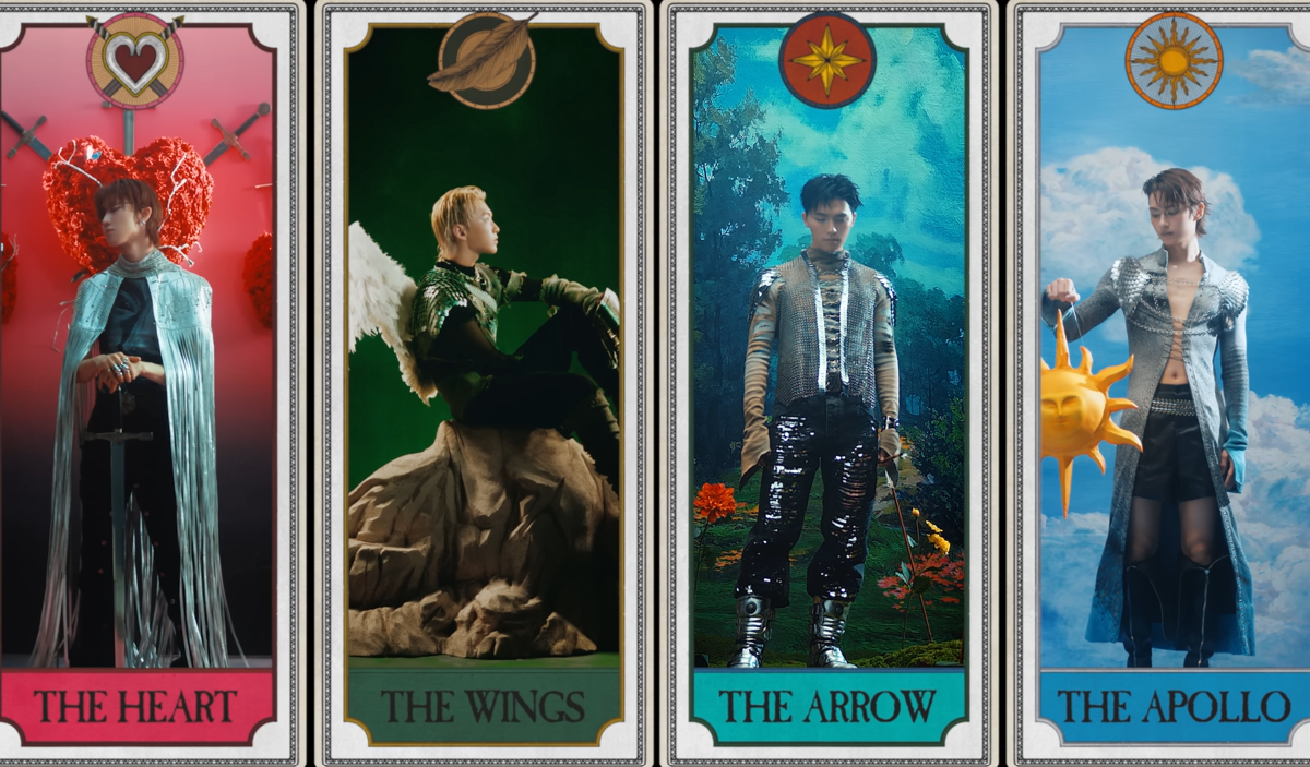 That dreamy aesthetic is carried over into the music video. The video features a tarot card concept, with the members each being a character on a card (see the featured image for this post)—THE8 being The Heart, HOSHI being The Wings, DINO being The Arrow, and JUN being The Apollo. The outdoor scenes, the sets, the outfits, and the makeup donned by the four members all have this dreaminess that puts you in awe and captivates your attention, just like the song does. Definitely a stunning video and one I recommend you check out down below.