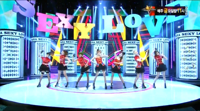 - T-Ara had a lot of hate, but I seemed to enjoy this stage. Number 9 but vampire version. Not much change to the song, except for really creepy dance breaks. And BOOOOBSSS!!!!!